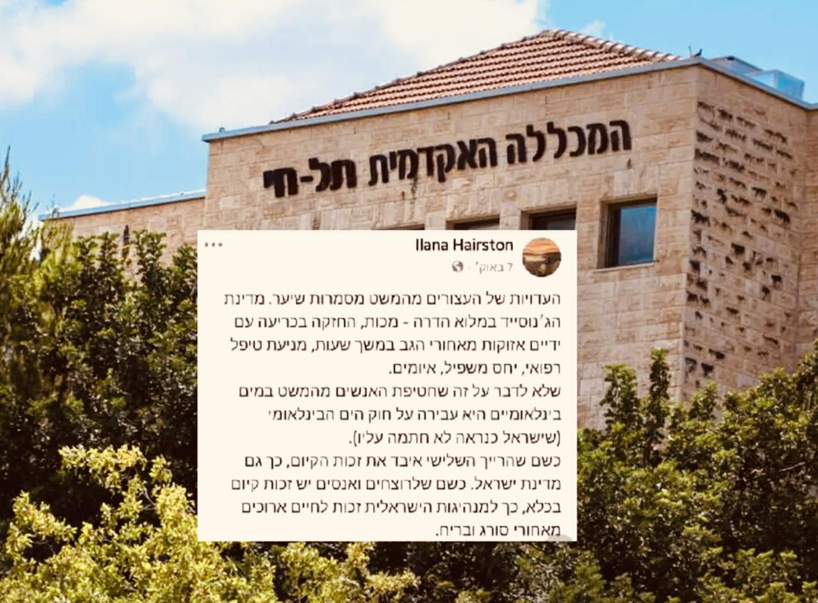 الآن يلتفتون إليه في هبة غضب عظمى داخل الكيان وخارجه. فتشت هذا الصباح في الحساب الذي يحمل اسم Ilana Hairston فلم أجد البوست.