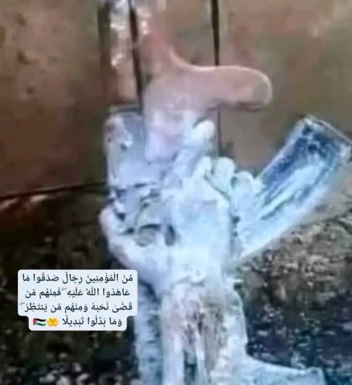 من هذه اليد التي استشـــ..هد صاحبها ممسكا بسلاحه، ليبعث على هذه الهيئة، غير غافل عن سلاحه بأمر الله تعالى في كتابه حتى وهو يموت..